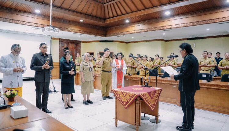 Bupati Badung I Nyoman Giri Prasta melantik dan mengambil sumpah 41 pejabat di Lingkungan Pemerintah Kabupaten (Pemkab) Badung yang terdiri dari 2 pejabat pimpinan tinggi pratama (eselon II) dan 39 pejabat fungsional di Ruang Kriya Gosana, Puspem Badung, pada Senin (12/8/2024). Sebelum dilantik, para pejabat tersebut melaksanakan prosesi mejaya-jaya di Pura Lingga Bhuana Puspem Badung yang dipuput oleh Ida Pedanda Gede Oka Watu Lumbang Manuaba dari Griya Magelung Baha, Mengwi.
