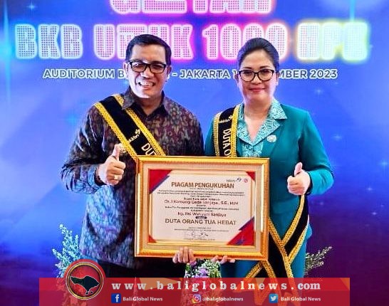 Bupati Tabanan, I Komang Gede Sanjaya, bersama istri selaku Ketua TP PKK Tabanan meraih penghargaan Duta Orangtua Hebat tingkat nasional pada Forum Gebyar Bina Keluarga Balita (BKB) untuk 1.000 Hari Pertama Kehidupan (HPK) tahun 2023 di Auditorium BKKBN, Jakarta, Selasa (12/12/2023).