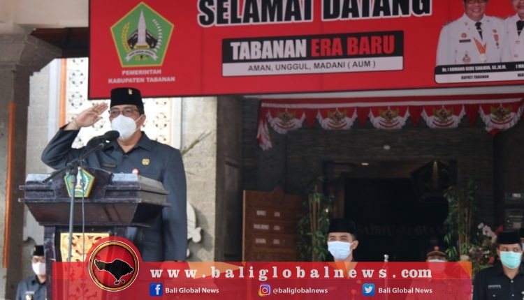 Bupati Tabanan, I Komang Gede Sanjaya, meminta perangkat Satpol-PP, Satlinmas dan perangkat Pemadam Kebakaran (Damkar) untuk selalu berupaya meningkatkan kinerja dalam melayani masyarakat terlebih di masa pandemi Covid-19 yang saat ini melanda Dunia, Indonesia, bahkan Tabanan.