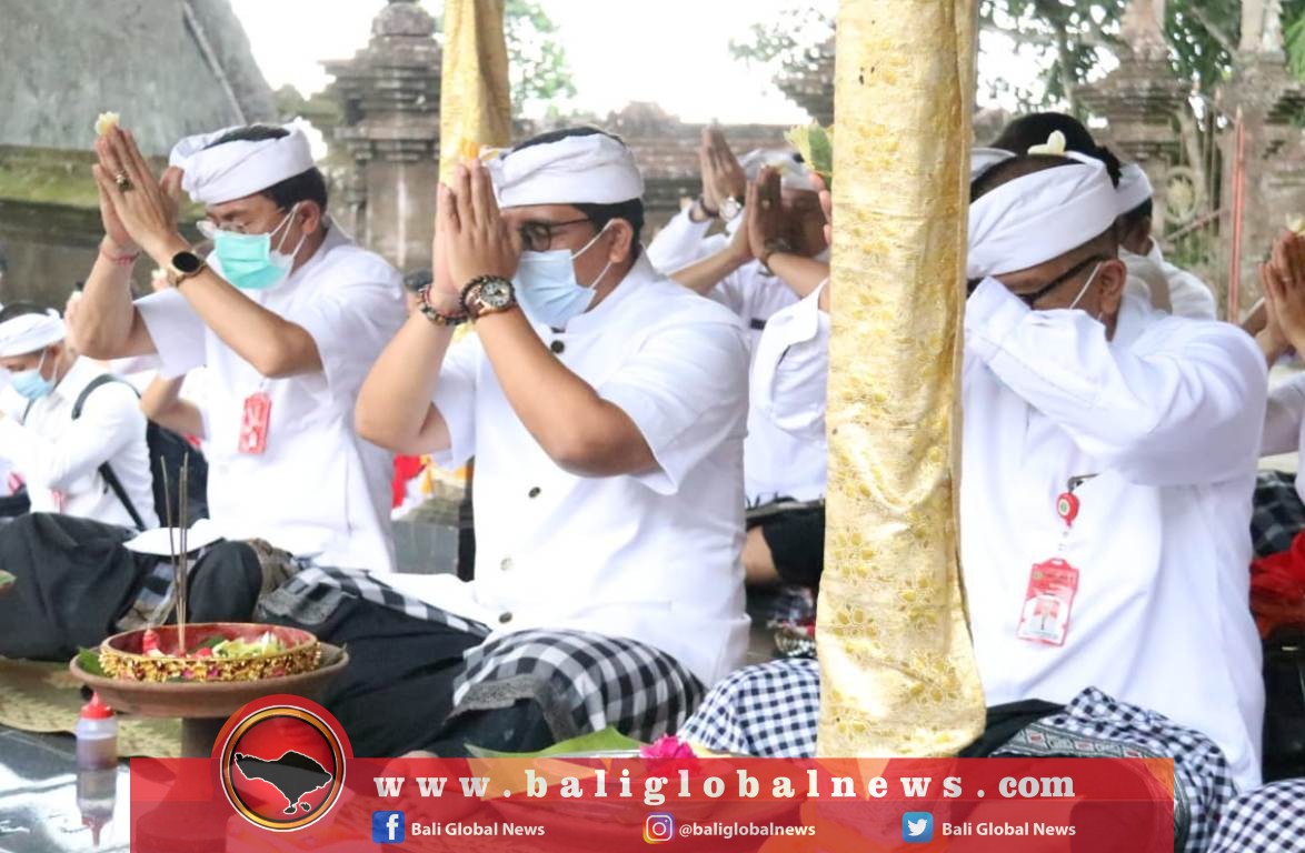 Bupati Tabanan, Komang Gede Sanjaya, beserta jajaran sembahyang serangkaian pujawali di Pura Luhur Muncak Sari, Penebel dan Pura Luhur Dalem Purwa Kubontingguh, Tabanan, Rabu, (5/5).