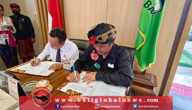 Bupati Bangli, Sang Nyoman Sedana Arta, bersama Kepala Kejaksaan Negeri (Kajari) Bangli, Yudhi Kurniawan, menandatangani MoU kerjasama dalam bidang penanganan masalah hukum, baik perdata maupun tata usaha pemerintahan di ruang rapat rumah jabatan Bupati Bangli, pada Senin (30/5).