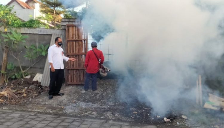 Desa Dangin Puri Kelod bersama Puskesmas I Denpasar Timur melakukan fogging di Banjar Mandala Sari Rabu (17/3).