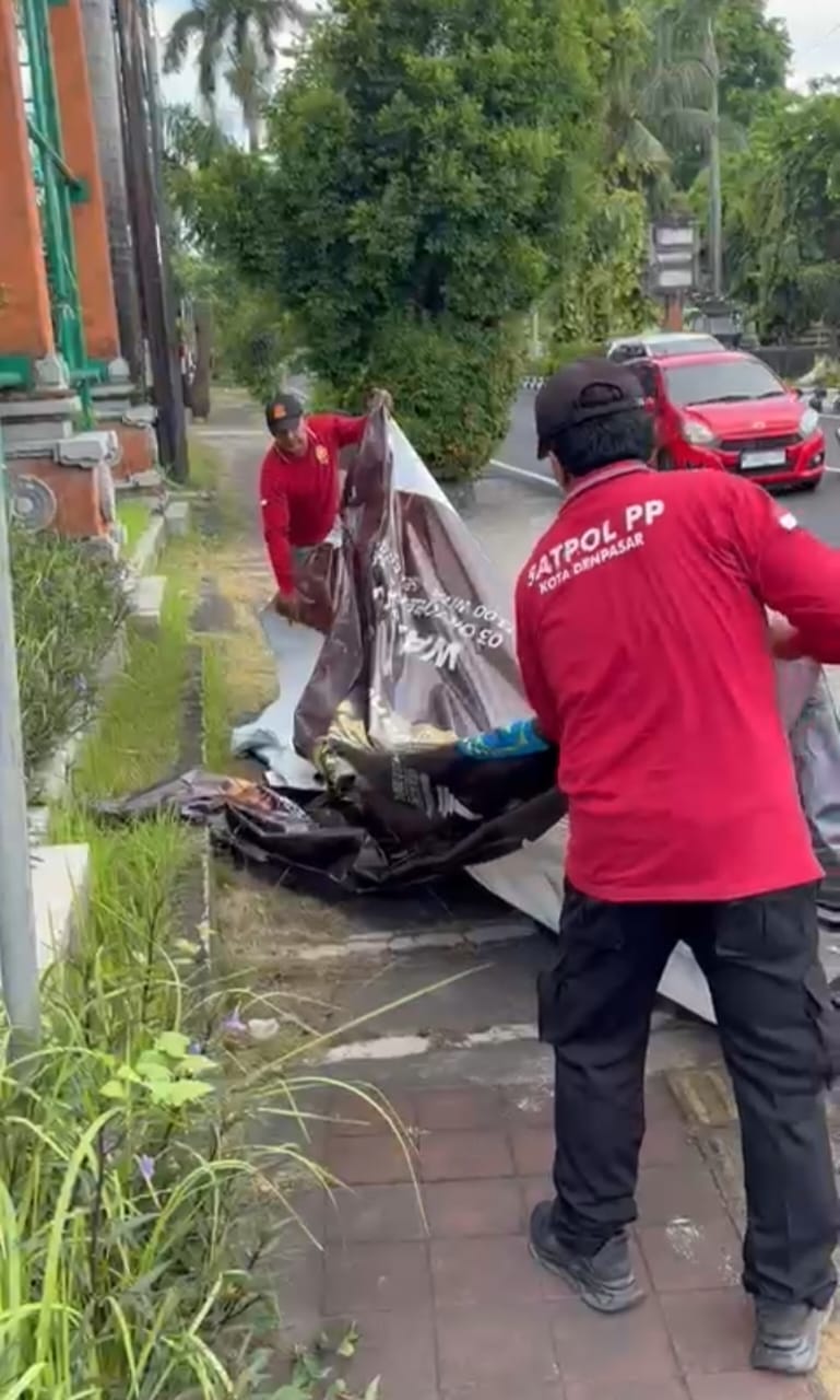 Dalam upaya menciptakan keamanan, ketertiban, dan kenyamanan lingkungan sekaligus menjaga keindahan wajah kota, Satuan Polisi Pamong Praja (Satpol PP) Kota Denpasar kembali melaksanakan kegiatan penertiban baliho, spanduk, banner, umbul-umbul, dan pamflet yang terpasang di fasilitas umum pada Selasa (14/10/2025).