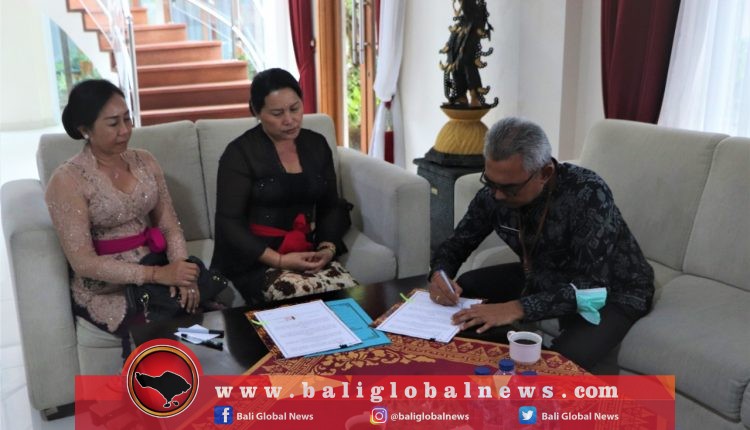 Ketua TP PKK Kabupaten Badung, Nyonya Seniasih Giri Prasta, menandatangani MoU dengan Kepala BNN Kabupaten Badung, AKBP Anak Agung Gede Mudita, terkait penguatan keluarga dalam upaya pencegahan penyalahgunaan narkotika di Rumah Jabatan Bupati Badung, Puspem Selasa (26/7).