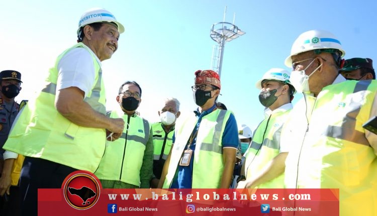 Wakil Gubernur Bali, Tjok. Oka Artha Ardhana Sukawati, meninjau progres pembangunan Terminal VVIP Bandara I Gusti Ngurah Rai bersama dengan Menteri Koordinator Bidang Kemaritiman dan Investasi, Luhur B. Pandjaitan pada Jumat (8/7).
