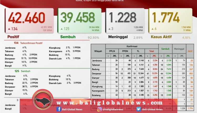 Pertambahan kasus terkonfirmasi positif 134 orang (113 orang melalui transmisi lokal dan 21 PPDN), sembuh sebanyak 125 orang, dan 3 orang meninggal dunia.