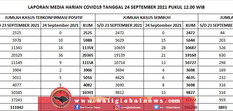 Atas perkembangan kasus tersebut, sesuai rilis Satgas Nasional total positif Covid-19 di Provinsi Bali hingga kini menjadi 112.059 orang, sembuh mencapai 106.290 orang, dan meninggal dunia menjadi 3.905 orang.