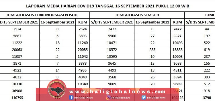 Atas perkembangan kasus tersebut, sesuai rilis Satgas Nasional total positif Covid-19 di Provinsi Bali hingga kini menjadi 110.912 orang, sembuh mencapai 104.525 orang, dan meninggal dunia menjadi 3.804 orang.