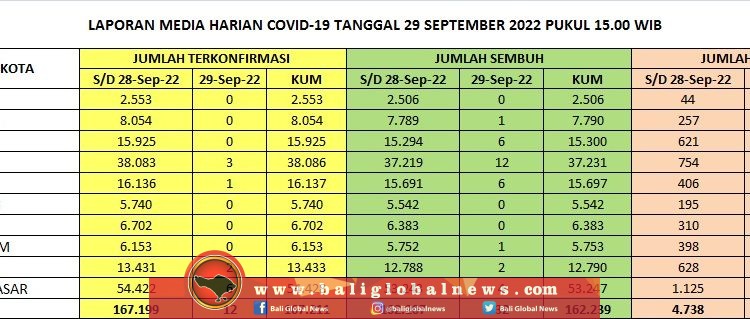 Pertambahan kasus terkonfirmasi positif Covid-19 di Provinsi Bali pada Kamis (29/9/2022) tercatat 12