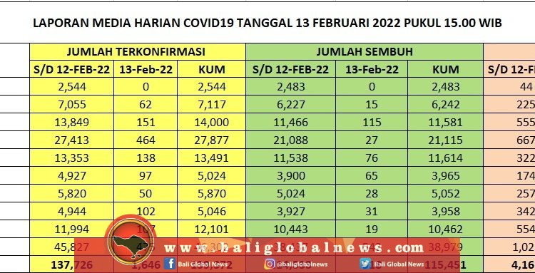 Pertambahan kasus terkonfirmasi positif Covid-19 di Provinsi Bali pada Minggu (13//2) tercatat 1.646 orang, pasien sembuh 918 dan 17 meninggal dunia.