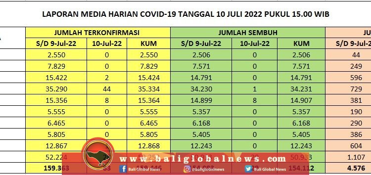 Pertambahan kasus terkonfirmasi positif Covid-19 di Provinsi Bali pada Minggu (10/7) tercatat 83 orang, pasien sembuh 29 dan nihil meninggal dunia.