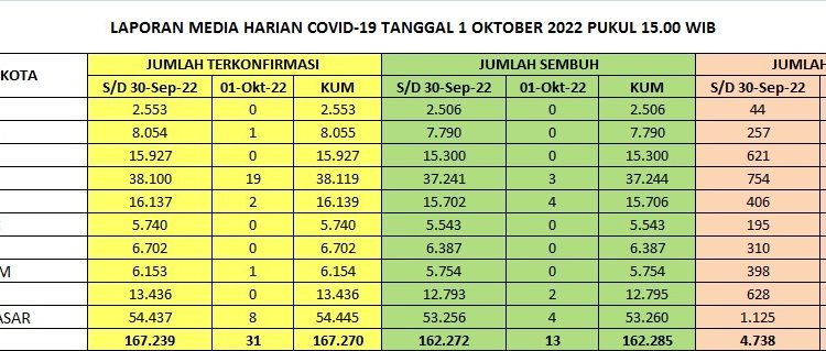 Covid-19 di Bali Sabtu Ini, Positif 31 dan Sembuh 13