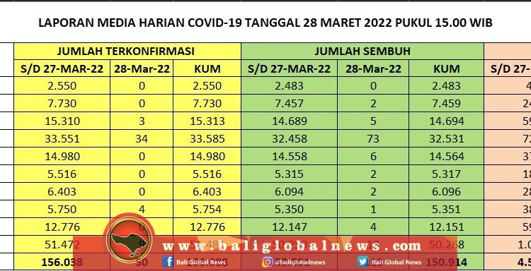 Pertambahan kasus terkonfirmasi positif Covid-19 di Provinsi Bali pada Senin (28/3) tercatat 50 orang, pasien sembuh 113 dan nihil meninggal dunia.