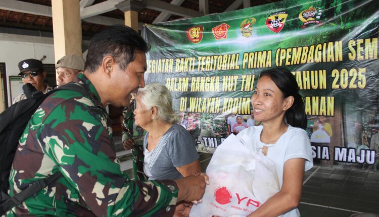 Kodim 1619/Tabanan menggelar kegiatan Bakti Teritorial Prima untuk memperingati Hari Ulang Tahun (HUT) TNI ke-80, dengan membagikan paket sembako. Acara ini dipimpin langsung oleh Dandim Letkol Inf Trijuang Danarjati dan menyasar warga kurang mampu di berbagai titik di Kabupaten Tabanan pada Kamis (25/9/2025).