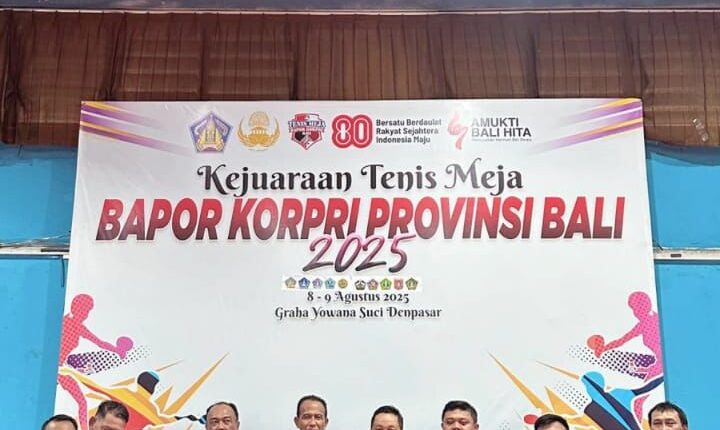 Tim Tenis Meja Denpasar kembali meraih juara satu dalam ajang final turnamen Tenis Meja Bapor Korpri Provinsi Bali setelah berhasil all final melawan Tim Denpasar di Graha Yowana Suci, Denpasar, Sabtu (9/8/2025).