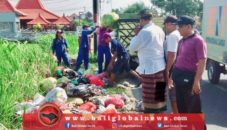 Jajaran Desa Pemogan menertibkan pembuangan sampah liar di sekitaran kawasan Taman Pancing Timur, Desa Pemogan pada Jumat (10/11/2023) pagi.
