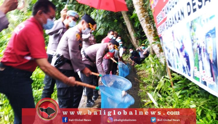 Tidak Hanya melakukan panen ikan dalam kegiatan ini juga dilakukan penyebaran 1500 benih ikan Nila di Banjar Sidan Kelod oleh Kapolres Gianyar beserta undangan lainnya.