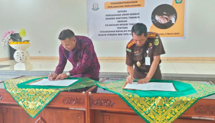 Perusahaan Umum Daerah Dharma Santhika (PUDDS) menjalin kerja sama dengan Kejaksaan Negeri (Kejari) Tabanan dalam upaya mitigasi risiko dan pendampingan hukum. Kerja sama ini diwujudkan melalui penandatanganan memorandum of understanding (MoU) tentang Penanganan Masalah Hukum Bidang Hukum Perdata dan Tata Usaha Negara di Kantor Kejari Tabanan pada Selasa (11/3/2025).