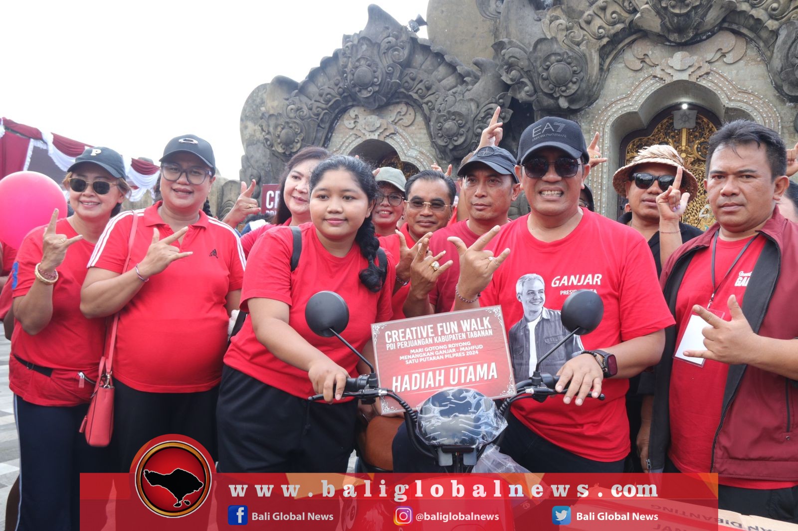 Ribuan masyarakat Tabanan memadati area Taman Bung Karno guna mengikuti kegiatan Creatif Fun Walk Ganjar Mahfud pada Minggu (5/11/2023) pagi. Kegiatan berlangsung meriah dan dibuka secara langsung oleh Ketua DPC PDI Perjuangan Tabanan sekaligus Bupati Tabanan, I Komang Gede Sanjaya.