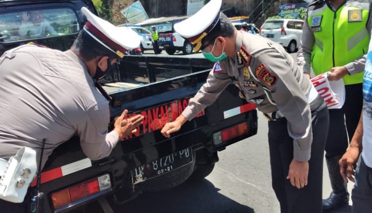 Direktur Lalu Lintas Polda Bali, Kombes Pol Indra, S.I.K., M.Si., didampingi Kasat Lantas Polres Bangli, AKP I Ketut Sukadana, turun langsung menggelar kampanye penggunaan masker. Sekitar 250 berbagai jenis kendaraan yang melintas di sekitar Penelokan Kintamani seperti truck, pikap, minibus maupun sepeda motor ditempeli stiker bertuliskan ”Ayo Pakai Masker” pada setiap badan kendaraannya, Minggu (26/9).