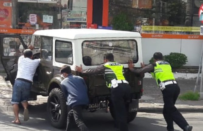 Dua Petugas Kepolisian di Batu Masyarakat Pinggirkan Mobil Mogok