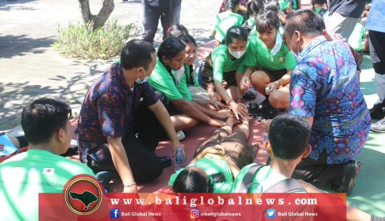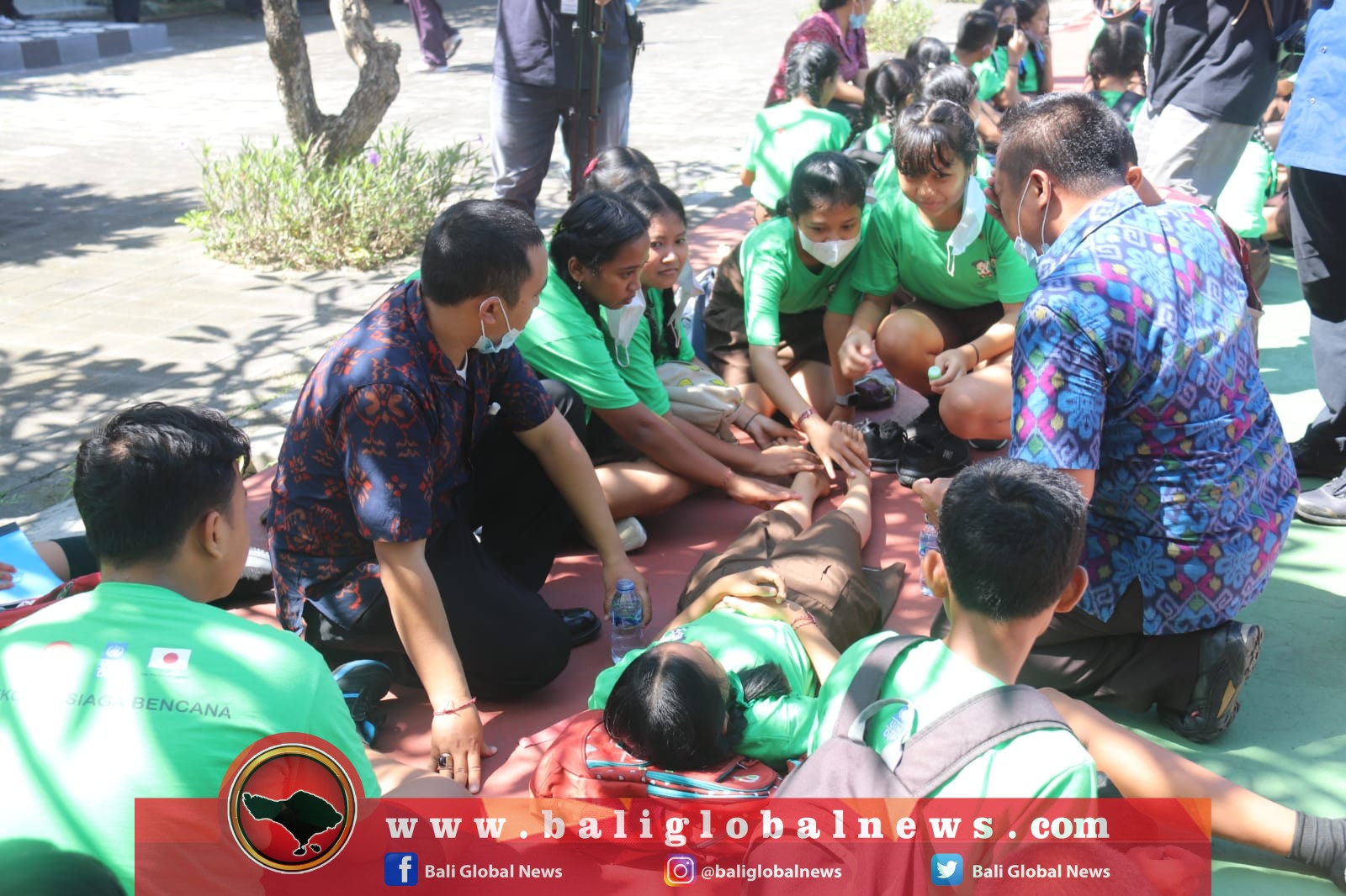 Dukung Pelaksanaan GPDRR Ke-7 di ITDC Nusa Dua, Siswa dan Guru SMPN 3 Kutsel Simulasi Gempa Bumi dan Tsunami