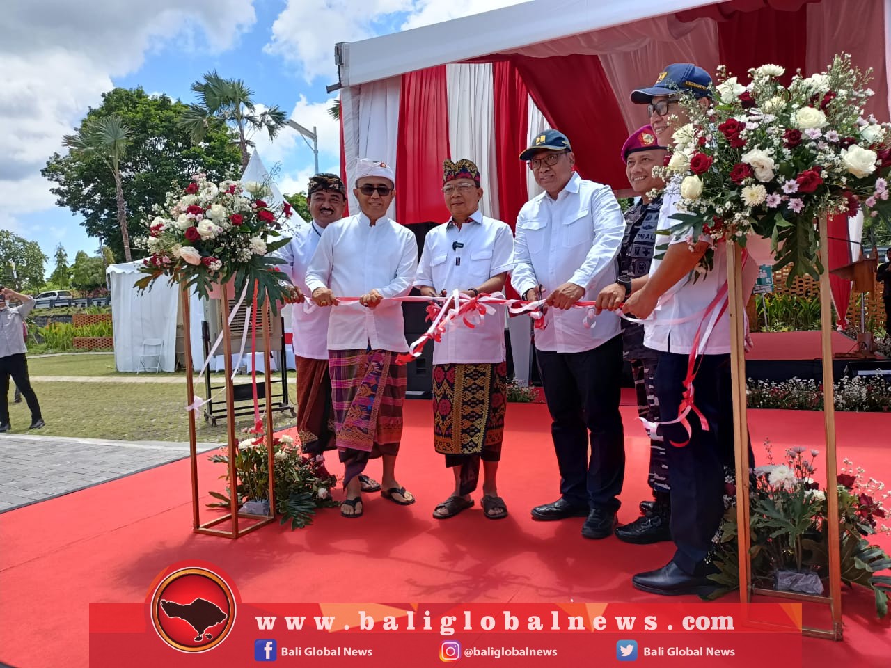 Gubernur Bali, Wayan Koster, didampingi Walikota Denpasar IGN Jaya Negara Bersama Direktur Bendungan dan Danau Kementrian PUPR RI, Airlangga Mardjono dan Kepala Balai Wilayah Sungai Bali Penida Eka Nugraha Abdi meresmikan Embung Sanur, di Desa Sanur Kauh, Denpasar, Minggu (30/10/2022).