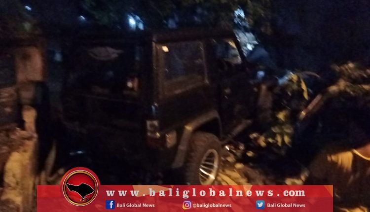Sebuah kendaraan roda empat, Feroza, menyeruduk tiga sepeda motor yang parkir di pinggir jalan, tepatnya di sebelah utara pertigaan patung Jalan Raya Abiansemal – Blahkiuh, Kecamatan Abiansemal, Badung. pada Jumat (18/2) pukul 22.00 Wita.