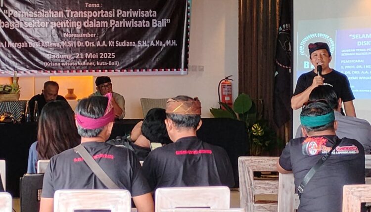 “Permasalahan transportasi pariwisata yang menjadi sektor penting dalam pariwisata Bali. Kami menyampaikan enam poin yang sudah masuk ke dalam rancangan perda inisiatif di DPRD Bali, dan kebetulan Pak Sudiana juga ketua Pokli penyusunnya,” ujar Ketua Forum Perjuangan Driver Pariwisata Bali, Made Darmayasa, usai diskusi terbuka, di Tuban, Badung, pada Rabu (21/5/2025).