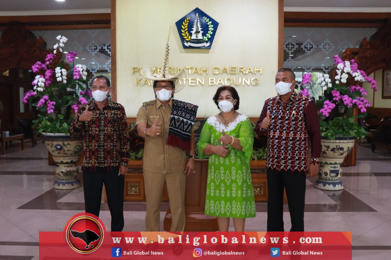 Bupati Badung, I Nyoman Giri Prasta, menerima kunjungan kerja (kunja) Bupati Rote Ndao, Provinsi Nusa Tenggara Timur (NTT), Paulina Haning Bullu beserta jajaran terkait Mall Pelayanan Publik dan Desa Wisata, di Ruang Tamu Bupati Puspem Badung, pada Senin (11/4).