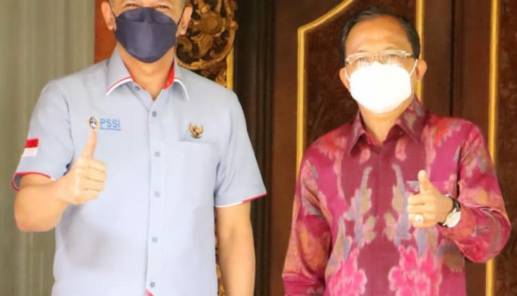Gubernur Bali, Wayan Koster, menerima kunjungan kerja Wakil Ketua Umum (Waketum) PSSI, Iwan Budianto, di Jayasabha, Denpasar pada Selasa (16/11) guna membahas persiapan sepakbola BRI Liga 1 yang akan berlangsung di Pulau Dewata.