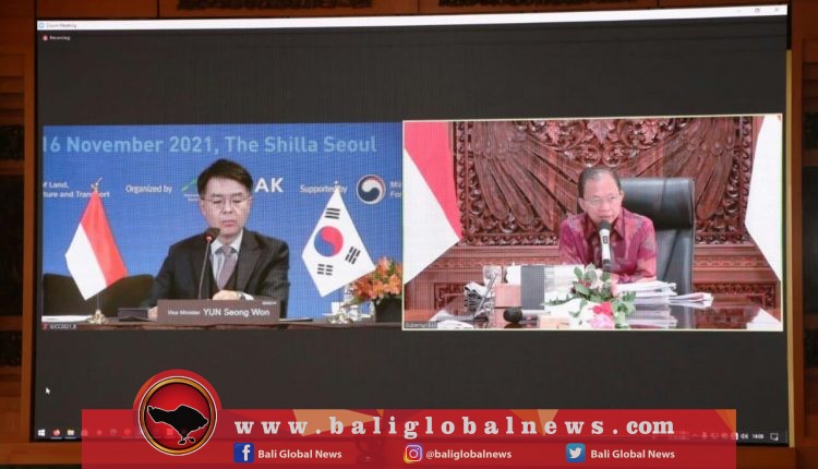 Gubernur Bali, Wayan Koster, menghadiri pertemuan bilateral tingkat tinggi dengan Wakil Menteri Pertanahan, Infrastruktur dan Transportasi Korea, Yoon Sung-won secara virtual dari Jayasabha, Denpasar, pada, Selasa (16/11).