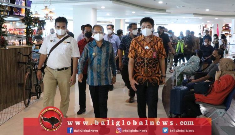 Gubernur memantau suasana pintu keberangkatan dan kedatangan sekaligus memastikan penerapan protokol kesehatan berjalan dengan lancar, mengingat selama kasus Covid-19 melandai Bali terus didatangi wisatawan domestik, salah satunya melalui jalur udara.