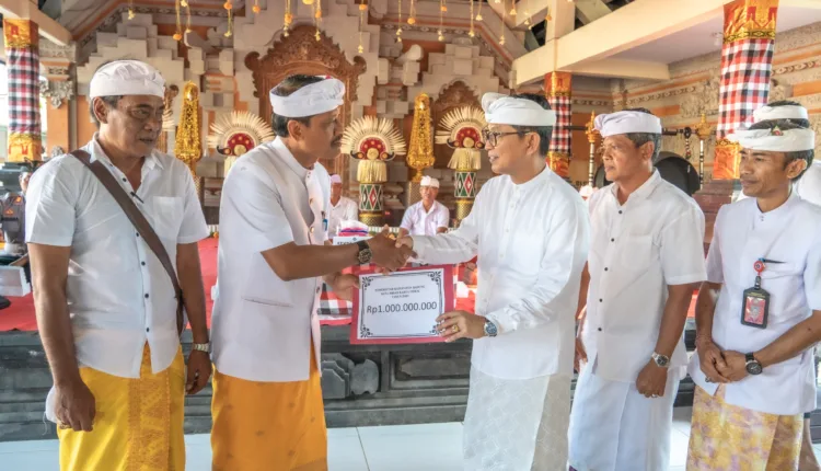 Hadiri Karya Ngenteg Linggih Pura Kahyangan Tiga dan Merajapati Umahanyar, Sekda Adi Arnawa Ajak Krama untuk Guyub dan Bersatu.