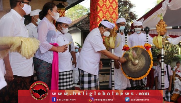 Hadiri Pemlaspasan Gong Banjar Bengkel Kawan, Bupati Sanjaya Ajak masyarakat Perkuat Rasa Persatuan