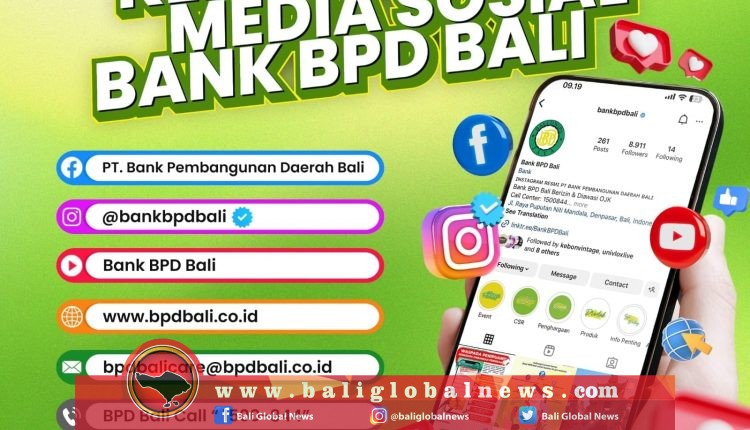 Sebagai informasi, nama Akun Resmi Medsos Bank BPD Bali yaitu pada Facebook: PT Bank Pembangunan Daerah Bali, Instagram (Ig): @bankbpdbali, Youtube: Bank BPD Bali, website: www.bankbpdbali.co.id, email: bpdbalicare@bpdbali.co.id. (bgn008)23090606
