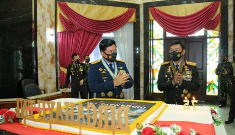 Panglima TNI Marsekal TNI Hadi Tjahjanto menerima kejutan dari Kapolri Jenderal Polisi Idham Azis pada Hari Ulang Tahun (HUT) Ke-75 TNI dengan berkunjung langsung ke Subden Merdeka Barat Denma Mabes TNI, Merdeka Barat, Jakarta Pusat, Senin. Kehadiran Kapolri tersebut untuk menyampaikan secara langsung ucapan selamat HUT Ke-75 TNI dan kue ulang tahun yang bertuliskan Dirgahayu TNI.