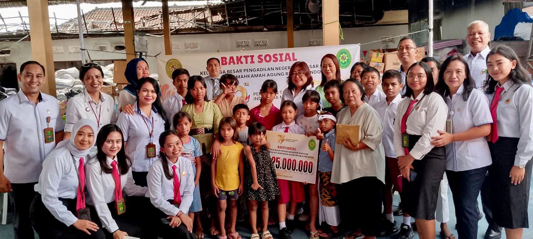 Pengadilan Negeri (PN) Denpasar, Bali, menggelar bakti sosial ke panti asuhan dan membagikan paket sembako kepada ojek online pada Senin (19/8/2024). Bakti social tersebut dalam rangka merayakan Hari Ulang Tahun Mahkamah Agung (HUT MA) RI ke-79 tahun 2024.