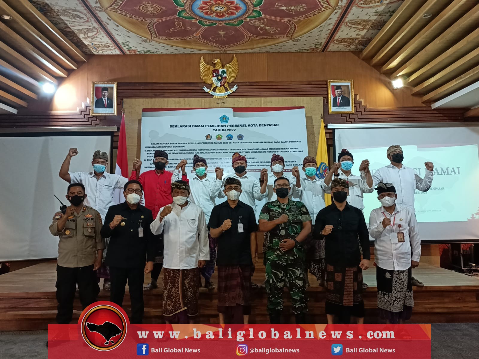 Walikota Denpasar, IGN Jaya Negara, menghadiri Deklarasi Damai Pemilihan Perbekel (Pilkel) periode 2022-2028 yang dilaksanakan di Graha Sewaka Dharma Lumintang Denpasar, Jumat (9/9/2022).