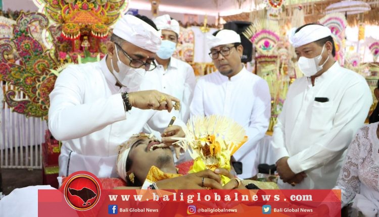 Desa Adat Pedungan, Kecamatan Denpasar Selatan, bersinergi dengan LPD Desa Adat Pedungan menggelar upacara maligia punggel dan mepandes/matatah massal di Balai Adat Pura Dalem Penataran Anyar Pedungan pada Selasa (26/7).