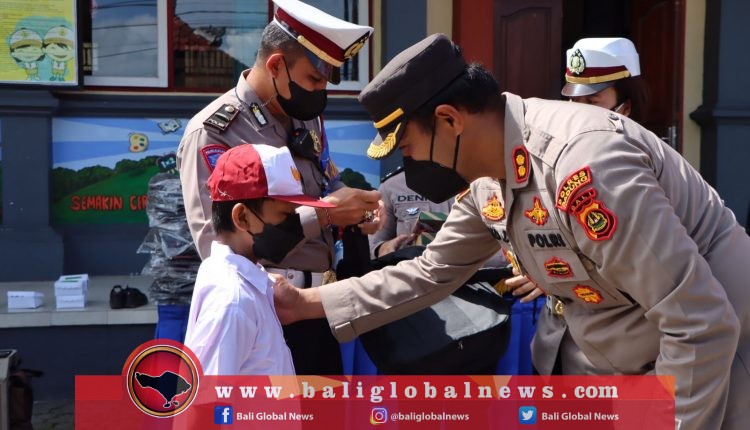 Kapolres AKBP Defretes Serahkan Bantuan Geber Satlantas Polres Badung kepada Siswa SDN4 Mengwitani