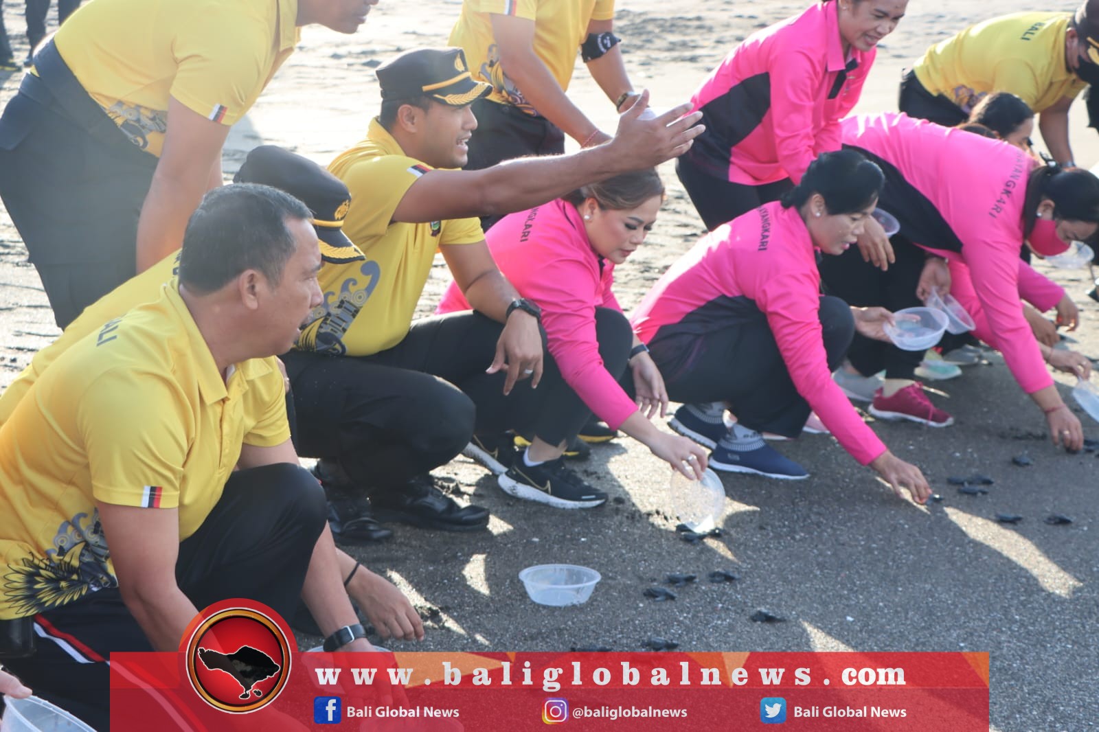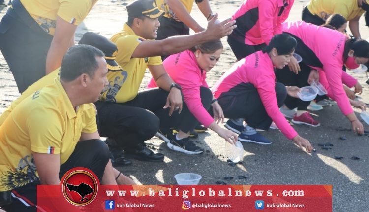 Kapolres Badung Lepas Tukik dan Bakti Sosial di Pantai Seseh