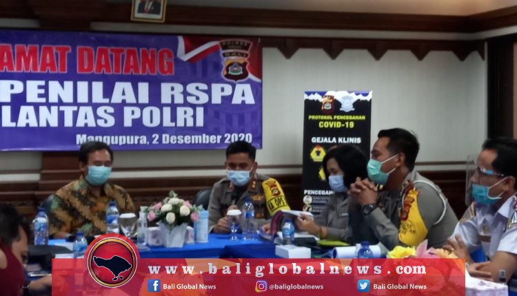 Kepala Kepolisian Resor Badung AKBP Roby Septiadi, SIK menerima Tim Road Safety Partnership Action (RSPA) dari Korlantas Polri dalam rangka penilaian RSPA yang dilaksanakan di Aula Satlantas Polres Badung, Bali. Rabu, (2/12) pagi pukul 09.00 wita.
