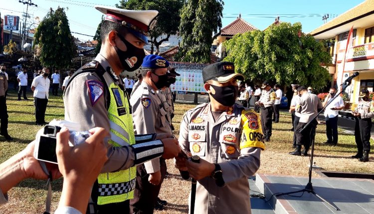 Pendisiplinan untuk tetap melaksanakan protokol kesehatan Covid-19 memasuki adaptasi kebiasaan baru dilaksanakan kepada seluruh personel jajaran Polres Buleleng dengan pemberian alat pelindung diri (APD) berupa masker yang berisi lambang TNI-Polri.