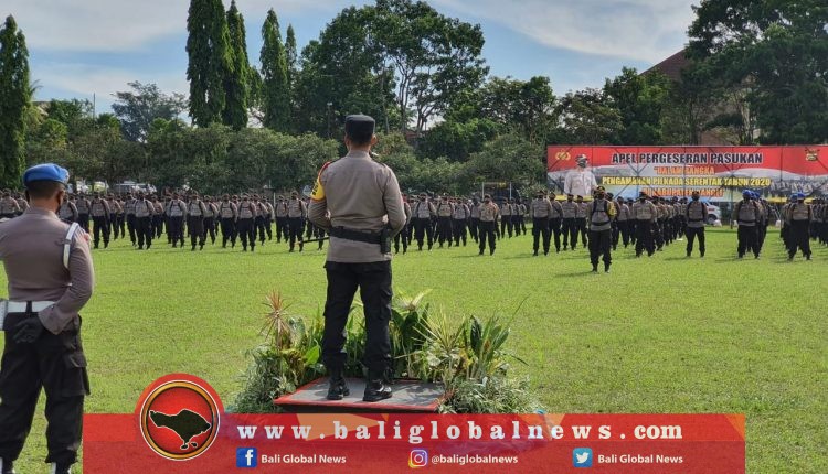 Jelang pemungutan suara Pilkada 2020 serentak pada Rabu (9/12/2020) besok, Polres Bangli gelar apel pergeseran pasukan (Serpas) di Lapangan Kapten Mudita Bangli, Selasa (8/12/2020).