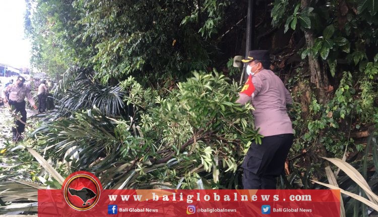 Kapolsek Mengwi Turun Langsung Evakuasi Pohon Tumbang di Depan Alfamart Beringkit