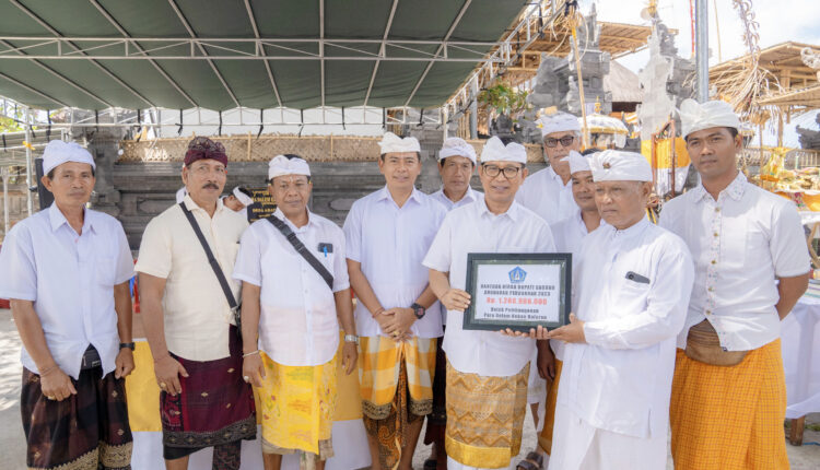 Sekda Wayan Adi Arnawa mewakili Bupati Badung menghadiri karya dewa yadnya ngenteg linggih padudusan alit di Pura Dalem Kebon Baleran Banjar Sedahan, Desa Adat Munggu, Mengwi, pada Rabu (21/8/2024). Karya yang dipuput oleh Ida Pedanda Griya Sidemen Pemaron. Sekda Adi Arnawa menyerahkan secara simbolis dana hibah fisik bersumber dari Anggaran Perubahan Tahun 2023 Rp1,2 miliar lebih yang diterima oleh Ketua Panitia.