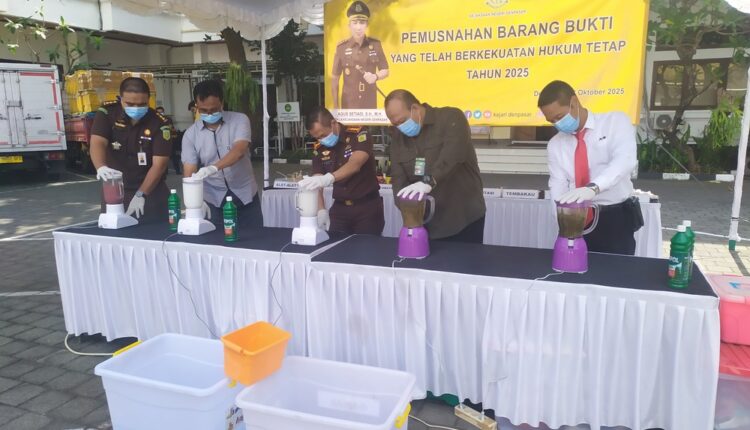 Kejari Denpasar memusnahkan lebih dari 28 kilogram narkoba berbagai jenis meliputi sabu seberat 3.771 gram, ekstasi 568 gram, ganja 23.410 gram dan narkotika jenis lainnya 829 gram, serta obat-obatan lainnya 174 gram pada Rabu (22/10/2025).