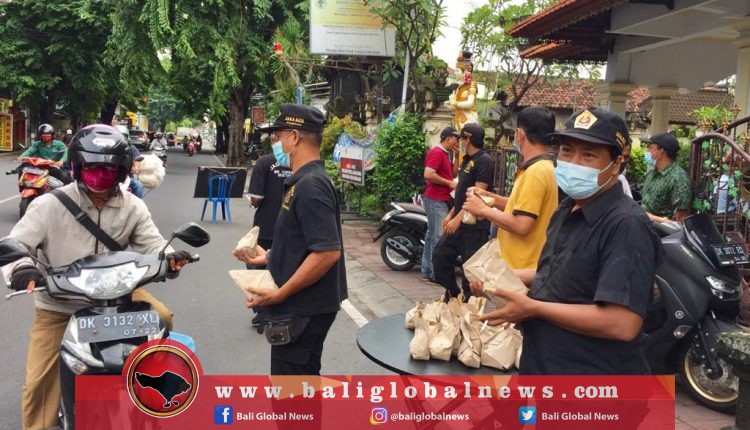 Kelurahan Sesetan Pantau Prokes dan Bagikan Nasi Bungkus Gratis