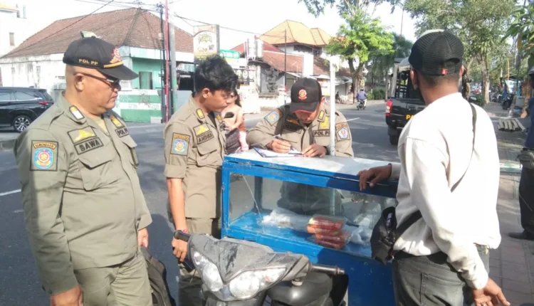 Kelurahan Sesetan, Kecamatan Denpasar Selatan, menertibkan Pedagang Kaki Lima (PKL) yang berjualan di bahu jalan dan trotoar sepanjang Jalan Raya Sesetan, pada Rabu (22/5/2024).